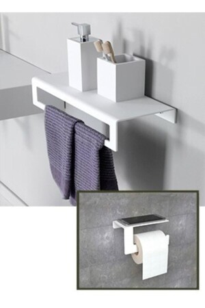 MNZ-الملصق على مدى الحياة رف لا يتصدأ قابل للتعديل منظمة الحمام حاملا شامبو أبيض - أبيض Lş-01 PRA-3796235-1227
