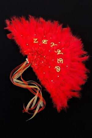 مروحة العروس الحمراء - العروس لتكون - حفلة البكالوريوس - ليلة هينا - مروحة ريش خشبية
