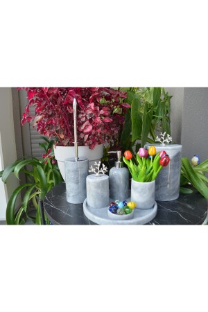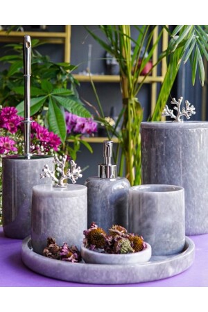 5 Parça Lenox Akrilik Bambu Banyo Seti Gri