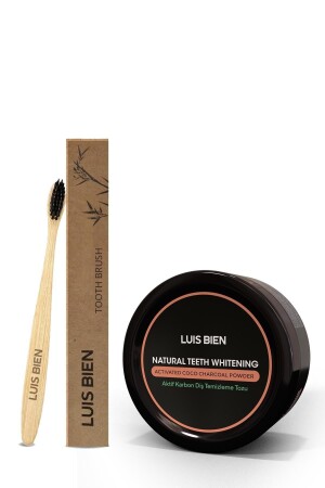 مسحوق تنظيف الأسنان من الكربون المفعول من MNZ 50 جرام + مجموعة فرشاة الأسنان من البامبو