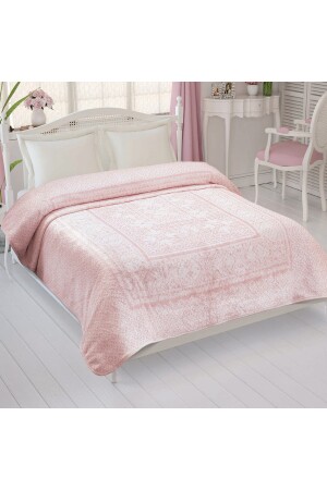 Krem Çift Kişilik Fransız Güpürlü Çeyizlik Battaniye Takımı