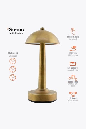 مصباح الطاولة القابل للتشحيل من MNZ ، يعمل بطارية ، LED ، مصباح الطاولة الملمس Sirius Antique Antique