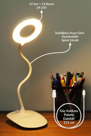 Dekor Yapay Eva Çiçeği Kablosuz Masa Lambası Beyaz Gold