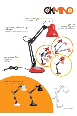 مصباح عمل MNZ-Okmino Acrobat. مصنوع من مواد بلاستيكية صلبة ومعدنية. نوع القبعة هو E27 القياسية. الأبعاد: 15 سم ارتفاع 49 سم
