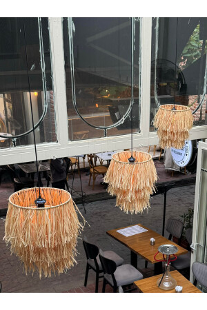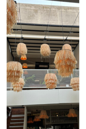مصباح معلق مزقق من طراز MNZ Raffia Wicker Decorative Pendant Lamp Chandelier M221