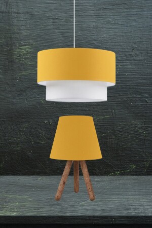 مصباح معلق من كيك MNZ شمعة وشمعة من الخشب ثلاثية قدم مصباح سقف مزدوج مجموعة صفراء AAGK9009