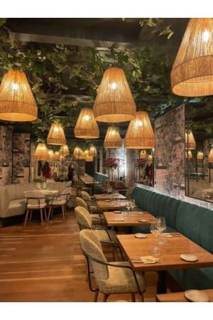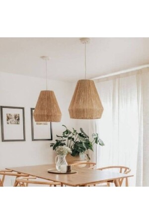 إضاءة ديكورية من طراز MNZ. القياس: أقصى قطر 32 سم ارتفاع 39 سم المواد: تطبيق مع حبل جوت على الأسلاك المعدنية. القبعة