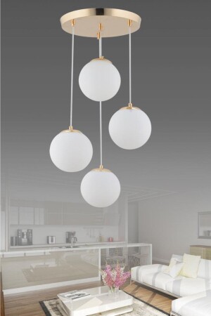 مصباح MNZ-المعلقة 4 قطع ذهبية كرة زجاجية بيضاء 1605040012594