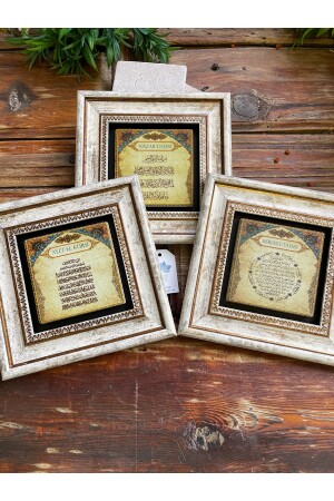 MNZ- هو مجموعة من 3 تتكون من Ayetel Kürsi ، العين الشريرة وصلاة التبركة. الأبعاد: 20 سم × 20 سم. سم. سم: 2 سم. الأطر