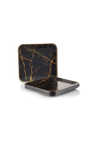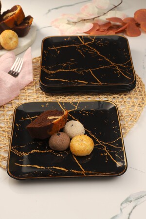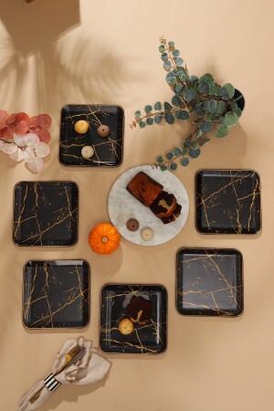6' lı Cam Kek Pasta Tabağı Seti - Yaldızlı Lüks Pasta Takımı(16CM)