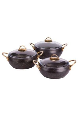 مـنـز-السودـي الذهبـي المقبض 3 قطع غرانيت كاسيرول بوت سيـت K-542