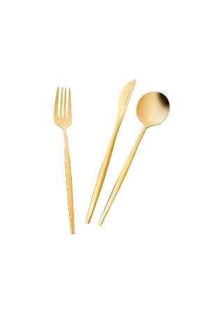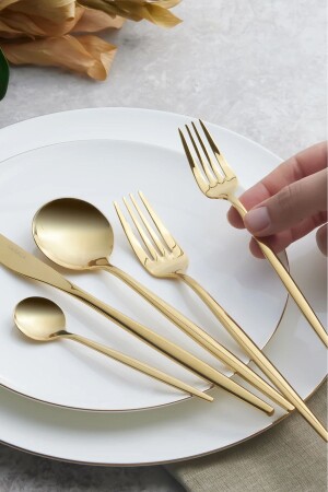 MNZ-Karaca Orion Shiny Gold 30 Piece Fork Spoon Knife Set للست أشخاص مجموعة تضم 6 سكاكين عشاء (22.5 سم) 6 ملعقة (21 سم) 6 ش
