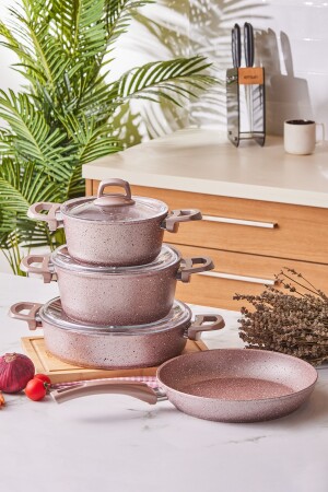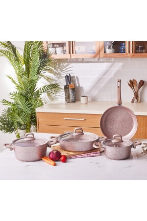 م.ن.ز-إمسان Premium-S Pro Gold Pink 7 Piece Granite Cookware Set Set Content 18 سم بركة 1.8 لتر 22 سم بركة 3.1 لتر 26 سم كارنييارك/بر