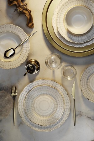 م.ن.ز-كوتاهيا البورسلين العظام أوليومبوس 24 قطعة عشاء مجموعة 6 أشخاص 12390 يتكون من 6 قطع من 27 سم لوحة الخدمة، 6