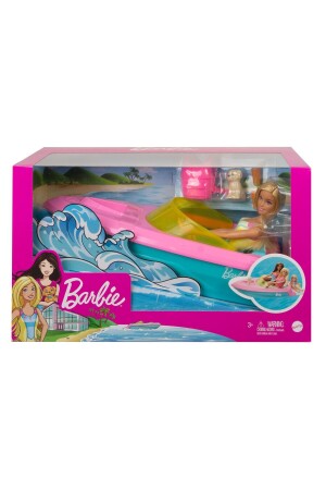يمكن للفتيات أن تأخذ قصصهن المستنفذة من الخيال من البرية إلى البحر مع باربي® الدمية وصديقتها الكلبية و قاربها العائمة! يمكن للأطفال