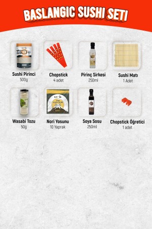 مجموعة بداية السوشي لدينا مجموعة بداية السوشي لكل من يريد صنع السوشي لمحاولة. يتكون من 7 منتجات مختلفة. مع هذه المجموعة، يمكنك إعداد 10 طومارات الس