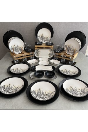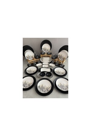 64 Parça 12 Kişilik Platin Modern Krem Kahvaltı Takımı