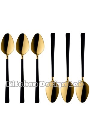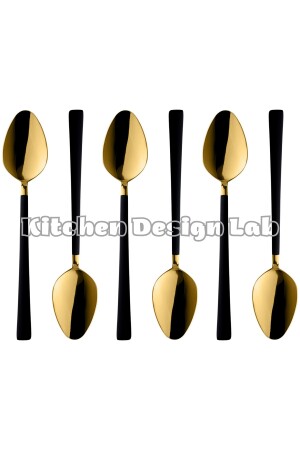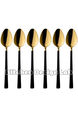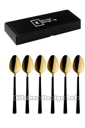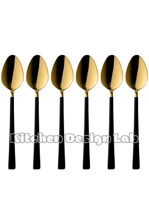 مـنـز-شينـي ذو الذهب السوداء الحلوي والإيس كريم ملعقة 6 قطع، صندوق، فولاذ فولاذ المقاوم للصدأ ملع
