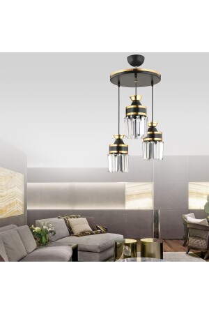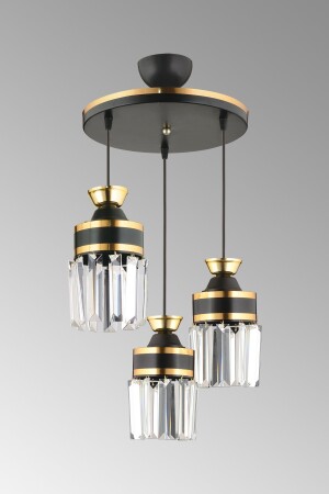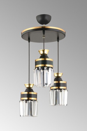 مـنـز-طوكيو 3-قطعة مصباح معلق أسود مع حجارة كريستال وسلندر شريط صفراء يواجه نحو أسفل فاخر الشنابل S