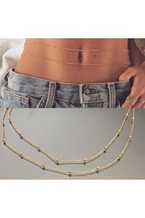 MNZ-Tarnishable 2 قطع ذهبية لون ليني سلسلة الخصر وجواهر الجسم - رقبة الخصر