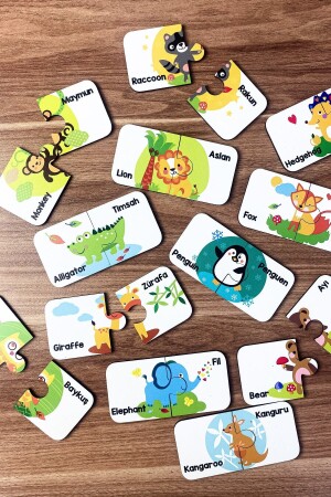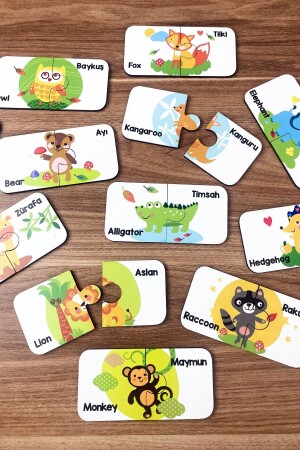 مـنـزـ الخشبية لعبة مـطابقة قطعتين حيوانات تركية إنجليزية حيوانات رياضت الأطفال اللعبة التعليمية