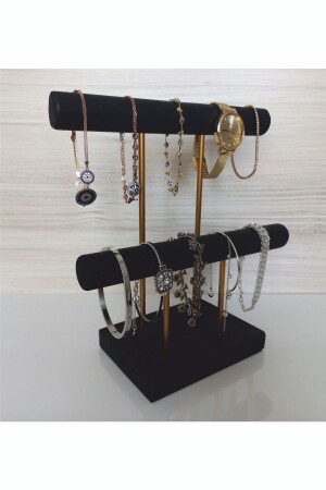 مـنـزـ الخشب - الذهب المطبوع للصلب مجوهرات الوقوف المجوهرات منظّم المجوهرات منظّم 2 مستوى أسود لون SBKSBLACK