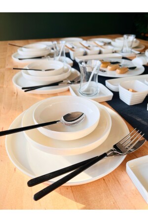 (MNZ-Matte) عشاء أسود / فطور مجموعة 30 قطعة لـ 6 أشخاص dmtaks202330