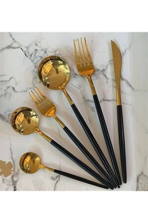 مـنـز-فرات 36 قطعة طعام ذهبية مع عجلة سوداء لـ 6 أشخاص
