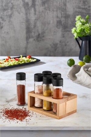 رف من نوع MNZ-Spice مع منصة خشبية. منتج منزلي ميكليك شوب ليما 6 قطع وعاء معكرات خشبية مجموعة هي مساعد المطبخ الخاص بك المص