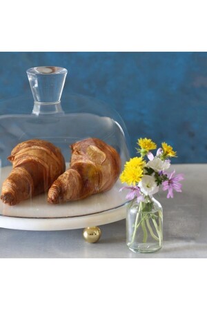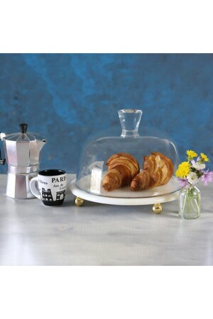6' lı Cam Kek Pasta Tabağı Seti - Yaldızlı Lüks Pasta Takımı(16CM)