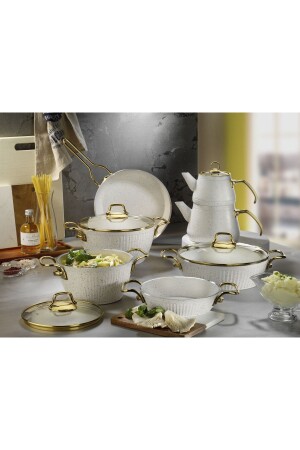 Bio Granit 7 Prç Istiridye Fildişi & Gold Kulp Tencere Ve Tava Seti EVTGR7PRÇEZMFİLDİŞİ