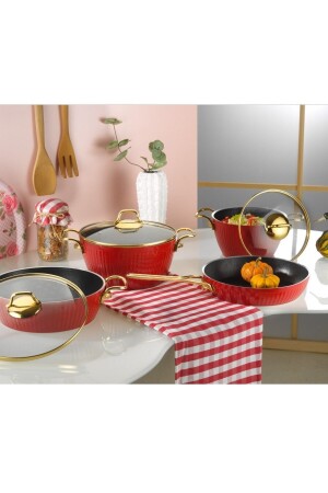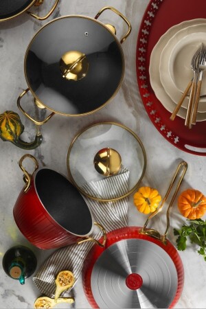 مـنـز-مايا 7 قطع غرانيت طباخات طباخات طبيعات ذهبية حمراء