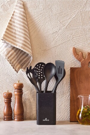 MNZ-كاراكا مخلوط 6 قطع مجموعة الخدمة مع مجموعة الموقفات محتوى 1 قطعة كولاندر 33.5 سم 1 قطعة اللادل 32 سم 1 قطعة Spatula 33.4 سم