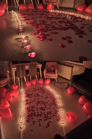 MNZ-50 شموع القلب المضيئة (تحترق لمدة ساعة) 25 بالونات القلب اللاتكس (هليكوم سوف تطير إذا تم الضغط عليه، وإلا عليك وضعها على