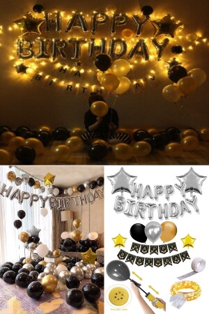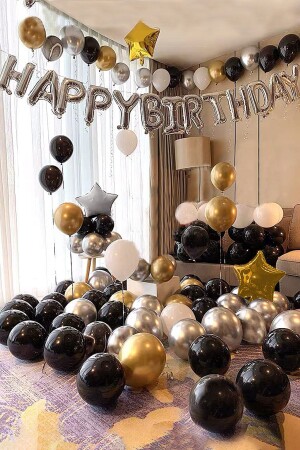 مجموعة MNZ-Set تضم: 45 بولونات لوحة معدنية من اللاتكس. ألوان البالون: 15 بولونات لوحة سوداء من اللاتكس - 15 بالونات لوحة ذهب