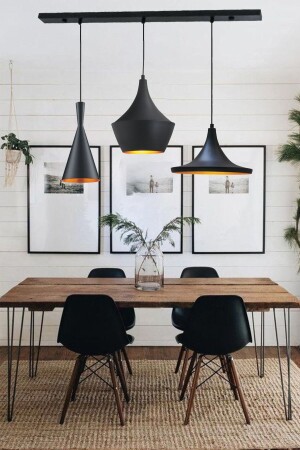 3'lü Siyah Modern Sarkıt Led Avize Beyaz Işık Salon Mutfak Oda Hol Ledli Avize