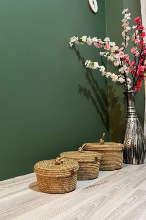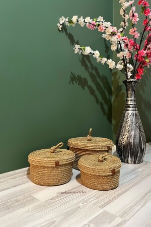 MNZ-3- Piece Jute Wicker Basket Set المنسوجة يدوياً للسلطة المتعددة الأغراض حمام ومطبخ منظمة المجموعة00042