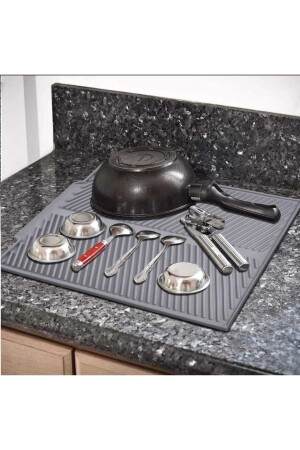 Bulaşık Kurutma Matı Bulaşık Kurutma Örtüsü Siyah Tezgah Üstü Bulaşık Matı Süper Emici Nanoflex