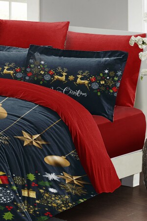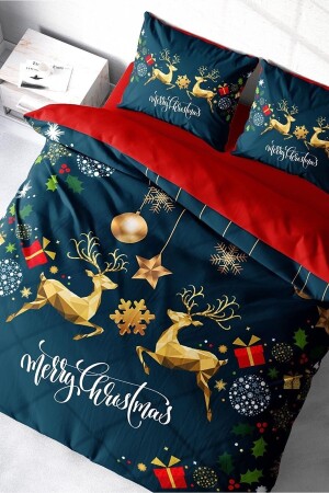 مـنـز - زينة عيد الميلاد غزال مظلم عيد الميلاد 100% القطن ساتين 3d مزدوج غطاء غطاء مجموعة monohome1184YB