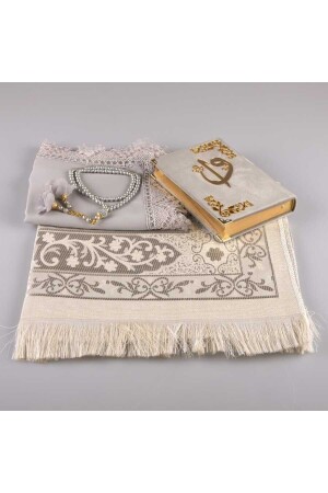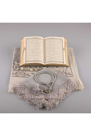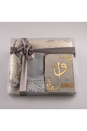 مـنـز شـول + خـطـف الصلاة + كريات الصلاة + مجموعة هدية القرآن (حجم الحقيبة - خـمـر - رمادي)
