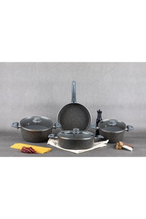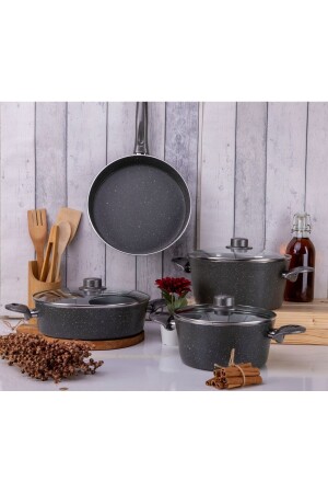 MNZ-AVANGARDA قطعة غرانيت المطبخ مجموعة الرمادي 20 سم صلصة عميقة (2.3 لتر) 24 سم صلصة عميقة (3.9 لتر) 26 سم بر