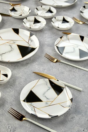م.ن.ز-الفخامة السيراميك الموزايك الرخام 18 قطعة إعداد الفطور لـ 8 أشخاص محتويات الحزمة 8 قطع من لوحة الكعك (20 سم