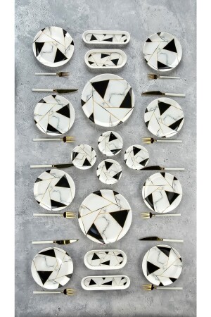 64 Parça 12 Kişilik Platin Modern Krem Kahvaltı Takımı