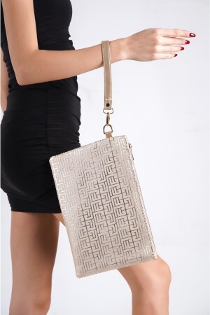 Kadın Trend Bej Deri Clutch Portföy Çanta