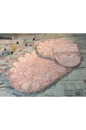 Krem Exclusive 3lü Oval Çeyizlik Saçaklı Fransız Dantelli Klozet Takımı Banyo Paspas Seti BnyExclusiveOval3lu