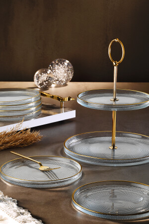 MNZ-6-piece Glass Cake Plate Set - مجموعة كعك فاخرة ذهبية (16CM)