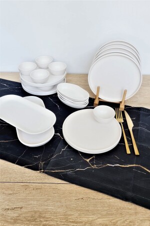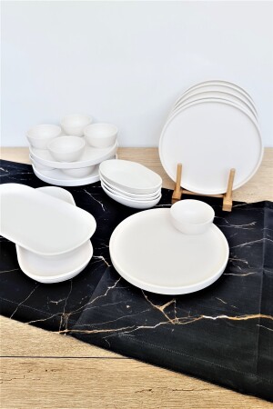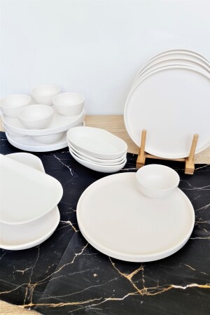 مـنـز - مـتـة بيضاء قابلة للتجميل 22 قطعة إفطار مـن 6 أشخاص
