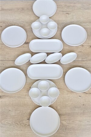 64 Parça 12 Kişilik Platin Modern Krem Kahvaltı Takımı