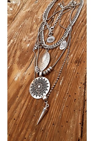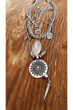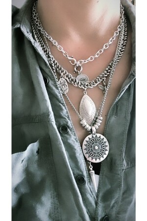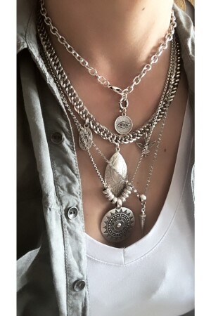تتكون MNZ-It من 4 قلادة. طول القلادة هو 4045-50-55 سم على التوالي. تم تصميمها من سلسلات مستوردة ومادة فضية قديمة. جميع منتجات