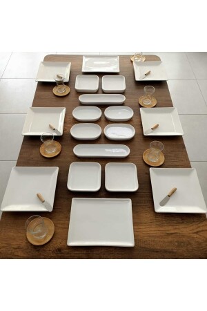 64 Parça 12 Kişilik Platin Modern Krem Kahvaltı Takımı